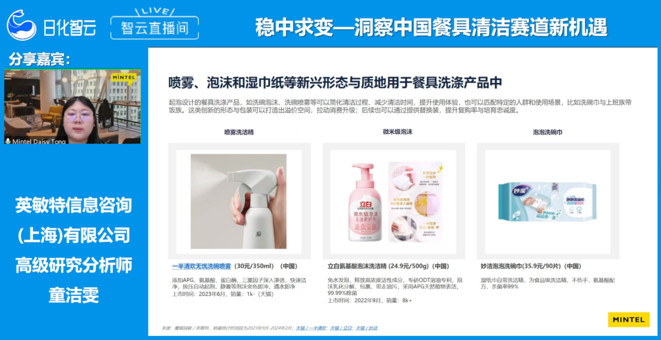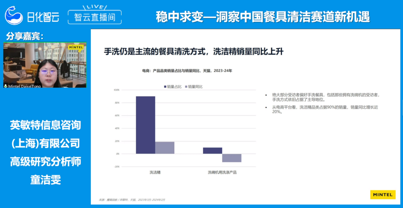 九游体育随着公众健康意识的增强和家庭清洁需求的上升,中国餐具清洁市场迎来了新的增长机遇。10月24日,日化智云携手全球知名市场研究咨询公司——英敏特信息咨询(上海)有限公司,邀请高级研究分析师童洁雯女士到智云直播间,共同探讨中国餐具清洁产品的创新方向,旨在为消费者带来更优质的清洁体验。